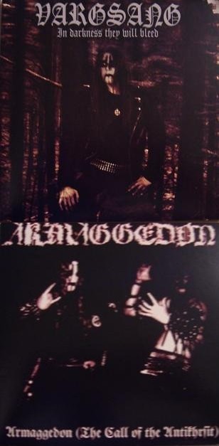 Petit split EP franco-germanique pas des plus récents car datant de 2004. On attaque par les français très contestés politiquement, j'ai nommé Armaggedon. En même temps, il suffit de jeter un œil sur leurs pochettes toutes similaires, pour s'apercevoir qu'ils cherchent cette réputation NSBM. L'éternelle question est de savoir si ces mecs jouent la carte de la provocation, ou s'ils portent vraiment leurs couilles. Mais c'est une autre histoire à laquelle je laisserais les radicaux de l'ultra-droite en débattre. Ce qui nous intéresse ici, c'est la musique déployée dans l'unique titre Armaggedon (Call of the Antichrist). On retrouve avec un certain plaisir le Black Metal basique, sincère et primaire d'Armaggedon. Pas de synthé, de chant féminin ou autres fioritures dispensables. Toujours ce chant haineux et vindicatif bien mis en avant. Des riffs très ‘darkthronien' qui font mouche, couplés à une batterie au son très carton malheureusement. Le point faible de ce titre d'ailleurs, car ce groupe joue un Black pas forcément super inspiré, mais qui reste honnête, guerrier et largement audible. Et rare sont les bons groupes dans ce créneau. A savoir que pour ceux qui ont loupé cet EP, sans doute devenu introuvable aujourd'hui, le titre a été réédité dans le plus récent split CD partagé avec KRIEGSGOTT. On passe à VARGSANG, projet solitaire allemand du créateur de GRAVEN. Et là c'est une grosse baffe droit dans la gueule ! Dans In Darkness They Will Bleed , unique titre là-aussi de ce one-man-band, on jurerait que les zicos sont 3 ou 4. Un Black racé, rapide et incisif au service du malin. Les riffs sont tour-à-tour vengeurs, violents et nostalgiques. On entend peu la batterie en fond sonore, bien qu'elle apporte un certain relief à l'ensemble tout de même. Un peu comme chez XASTHUR pour vous donner une idée de la chose. Et si vous ne vous êtes pas encore pendu, le chant du vociférateur finira de vous achever, je vous le garantis. Excellent ! Un split comme il ne s'en fait que trop peu, réservé aux plus extrêmes des Black metalleux.