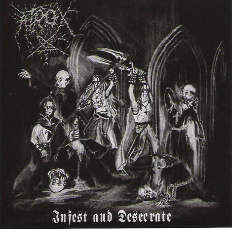 \"Evil Raw Metal\"!!! Voilà comment se définit, et à juste titre d'ailleurs, cet excellent quintette originaire de la capitale française. Cette démo comporte 6 titres bien enlevés, haineux à souhait, très rapides, débordants de rage ! La voix est hystérique et torturée, les instruments sonnent bien ensemble. Pas de soli ni de sons clairs, pas de synthé ni de voix de femelles, seulement l'Art le plus noir à l'état brut : seule la plage 4, \" Screams from Hell \" attaque lentement pour mieux vous tromper? le tout est très organique, avec un son correct, avec de la profondeur : chaque seconde qui passe, les convictions du groupe, surtout la noirceur, se dégagent de ce modeste CD-r . C'est le meilleur de Mayhem qui se rappelle à nous dans ces moments-là. d'ailleurs, je vous invite a dresser votre platine en l'obligeant à hurler \" Non serviam \" dès que vous poserez la galette incriminée. Tout cela sent bon l'UG, jusqu'à la réalisation de l'artwork, dépouillé mais efficace : le cover est un dessin noir&blanc illustrant une scène de massacre de prêtres par des guerriers adeptes de Satan ! En bref, que du bon! Buy or make love with gays !!!