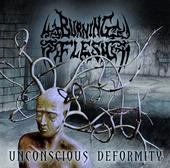 La scène death metal genevoise est décidemment inépuisable ! De plus, elle a horreur du vide : dès la disparition de combos de ce style, d'autres toujours meilleurs, tels que MUMAKIL, STORTREIGN ou encore KESS'KTHAK, s'empressent de venir prendre la place laissée vacante. Parmi ceux-ci, n'oublions pas Burning Flesh, qui possède déjà une expérience scénique enviable dans la région. Plutôt que de s'engager dans une course à la technicité brutale, comme c'est souvent le cas de nos jours, ces Franco-Helvètes optent plutôt pour un death metal old school , dont le très regretté DEATH semble être le principal géniteur. Old school par leur son bien caverneux et froid, mixé par un membre de MUMAKIL. Old school dans le choix de l'artwork, avec un dessin bien exécuté qui fleure bon les années 1980. Old school par les riffs bien foutus et accrocheurs qui n'hésitent pas à lorgner vers un thrash survitaminé à la DEATH. Après une intro instrumentale inquiétante qui aurait pu servir de bande annonce pour le film Seven, Puis l'on rencontre certes des passages furax et rapides, mais de nombreux plans misent avant tout sur la lourdeur, rejoignant en cela l'ambiance inquiétante d'un MORBID ANGEL. Seul le chant s‘éloigne diamétralement de DEATH, sous la forme d‘une guturre assez profonde d'un bon rendu. Les soli , eux, ne sont bons sans être démonstratifs, mélodieux juste ce qu'il faut pour faire mouche, un peu comme les vieux combos de death/black suédois savent en faire. Le titre éponyme, le septième, décolle carrément, avec ses cris aigus qui appuient la guturre, et cette ambiance bien nostalgique. Bref, pas de grosse innovation avec Unconscious Deformity , mais tous les éléments sont bien dosés pour rendre ce premier album accrocheur et dynamique. Enfin, avec 50 minutes de zique, vous ne serez pas volés. Il reste à trouver un label pour faire sortir davantage, Burning Flesh du bois, car il en a bien le niveau.