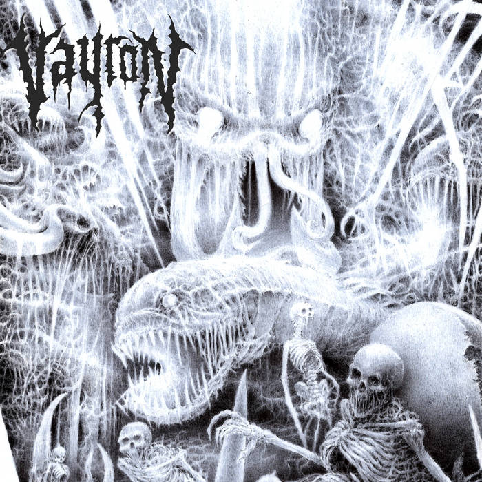 Vayron est sa nouvelle production. Du reste, il n'a pas eu besoin de chercher bien loin puisque trois des membres de ce jeune pousse énervé jouent également dans Silure dont le split avec Feretro a été publié par Nihilistic Holocaust. Edité donc en cassettes, cette démo séminale déverse quatre pistes taillées dans le meilleur d'un death (forcément) old school, celui régurgité aux Etats-Unis entre la fin des années 80 et le début de la décennie suivante. Deicide, Morbid Angel, Cannibal Corpse, voilà à quoi la bestiole fait penser. Du brutal, du technique aussi. Du qui éviscère aux quatre vents et éclabousse du sang partout. Quoique pas trop quand même. Moins que prévu dans tous les cas.