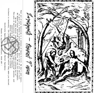 Oulalala ! Je sens que ça va être costaud de vous pondre une chronique objective encore sur ce coup là ! Déjà, je n'ai trouvé aucune signification pour ce nom étrange qu'est ZvrËÖprËh. Même en norvégien ou en polonais, ça ne veut rien dire. Mystère à éclaircir donc... Mais revenons à nos moutons (ou à nos boucs) ! Ce one-man-band français est dirigé par un certain « Nox » qui officie dans d'autres formations UG, et qui pratique avec ZvrËÖprËh un registre raw black metal underground à fortes tendances noïse. Tout d'abord, il est certain que le zicos possède un talent indéniable pour les riffs guitares, que j'ai trouvé à plusieurs reprises bien foutus. Je ne parlerais pas de la basse noyée dans la masse sonore, et du coup quasi-inaudible. La voix criarde porte relativement dans les aigus et ne relève d'aucune originalité pour pouvoir se distinguer d'autres combos du genre. La b-à-r n'arrange pas grand-chose avec là encore, un son métronome insupportable à plus de 30 secondes d'écoute. Et quel dommage que le gars est choisi de s'enregistrer dans sa cave ! Pour ma part, le son aggrave l'ensemble de façon considérable ! Par exemple sur le morceau 3, un riff complètement hallucinant à 2 minutes déboule tout droit des entrailles du démon, mais une fois de plus il est saboté selon moi par ce son épouvantable minimaliste et archi-bruitiste. Vous allez dire que je me répète, mais franchement je trouve cela tellement dommage de ne pas avoir donné un tantinet de puissance et de relief à cet opus, car on constate bien que le gars a un bon potentiel créatif et technique. En clair (ou en sombre, ca fait plus « evil »), une demo-tape underground destinée à un public underground idolâtrant des groupes tels que ZBT, BELKETRE, BLACK HOWLING, etc...