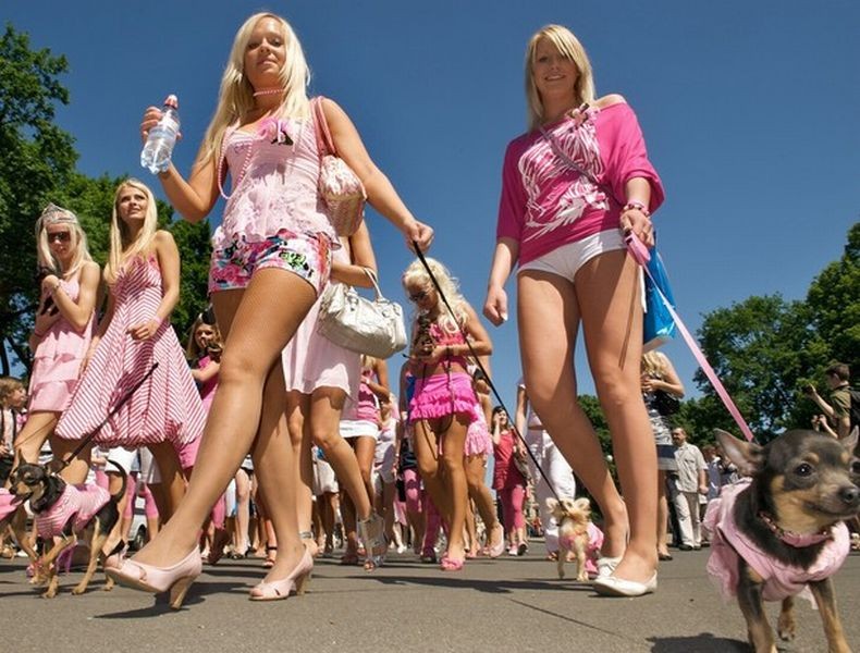 Plus de 800 blondes, vêtues de rose, boucles dorées au soleil, ont marché pour cette deuxième parade, que ses organisatrices voudraient voir devenir annuelle.