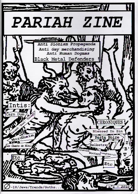 Nouveau venu dans l'UG, ce zine est en réalité édité par le label SECTA ROSA. Et Nox, l'unique tête pensante derrière le label et le zine, ne s'encombre pas de « politiquement correct ». Car, dévoué corps et âme au black metal, il sait que cette musique est là pour remuer la fourmilière du confort mental ambiant. Ainsi, encadrées par un artwork très provoquant (sex, dope and croix celtos), Pariah zine accueille dans ses pages des personnalités bien UG : ZBT, CARN DUM, MORDHEIM, LES CHANTS DE NIHIL, AUTARCIE, ainsi que les labels OGMIOS UNDERGROUND et DERNIER BASTION. Quelques chroniques du même tonneau, sans fard, sont écrites par un élan venu du cœur. Rugueux, Pariah l'est aussi par ses multiples « coups de gueule » et ses essais aussi poétiques que déjantés. Néanmoins, la mise en page se révèle propre, sans textes orientés dans tous les sens pour vous donner la conjonctivite ni trop de pétasses dénudées découpées dans Playboy. Pas de prétention, juste beaucoup de passion. Un zine velu – fans de progr' symphonique, passez (rapidement) votre chemin : uniquement pour les « Black metal defenders », comme l'indique la couverture !!!