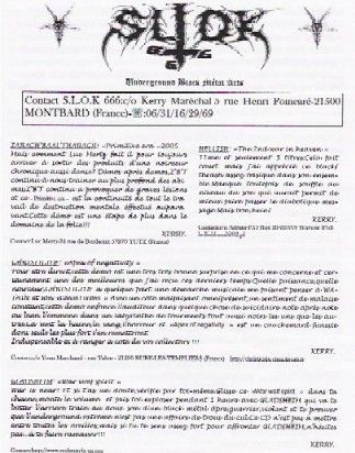 S.L.O.K. est devenu la newsletter de Kerry, Béki se concentrant sur Paranoyhard'zine (qui tarde à donner signe de vie, d'ailleurs...). 13 chroniques de prod ou zine de BM UG nous tiennt au courantd e l'actu de cette scène au cours des derniers mois. Certes, moins étoffée que d'habitude, mais à qui la faute ? Si les groupes ne répondent pas aux interviews, l'esprit UG se meurt...