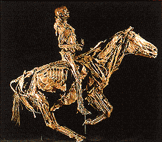 H Fragonard préférera aux techniques de la cire, papier mâché ou formol celle du montage de corps deshydratés injectés de résine pour la création de ses "écorchés", cadavres dépourvus de peaux.Si la nécessité de disposer d'exemples réels peut être facilement compréhensible pour la démarche scientifique, là où l'interrogation se fait est quant à la nécessité des pauses que Fragonard donne à certains de ses écorchés, des pauses théâtrales, dramatiques, effrayantes. Quand Fragonard, découpe, modifie les muscles, afin de leur donner un aspect plus esthétique. Il s'éloigne alors de la démarche purement scientifique, en témoignent les impressionnants Cavalier de l'Apocalypse et L'Homme à la Mandibule .