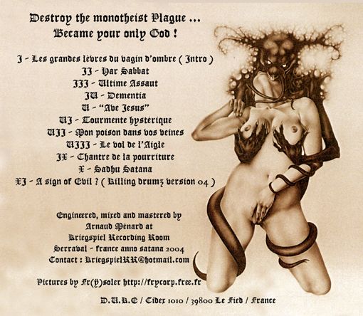Enfin, précisons que J.P. Dufour sait mettre son art au service du métal extrême : par exemple; voici son travail sur le premier album de OSIRION, "Har Sabbat", sorti chez DUKE, de vieilles connaissances à lui...