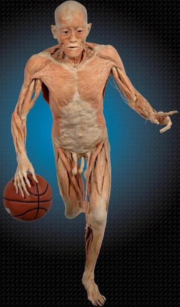 Les spécimens les plus fascinants et les moins choquants sont ceux qui sont encore «entiers». Ils révèlent ingénieusement chacun de nos systèmes organiques. Les visiteurs peuvent apprécier la complexité des mouvements et observer les muscles profonds et superficiels sur des corps à la peau et aux muscles écorchés, découpés et mis en situation dans plusieurs positions: assis sur un vélo, jouant aux échecs... Tous prennent plaisir à suivre le parcours des systèmes artériels et veineux... Chacun découvre les articulations, les os et les différents organes. Certains comparent même les formes et les tailles des différents organes, muscles ou os !