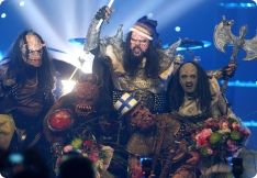 Le groupe Lordi, représentant de la Finlande, ce sont cinq joyeux types déguisés en dinosaures et qui, surtout, jouent du hard rock ! La cérémonie télévisée de l'Eurovision s'est déroulée hier soir à Athènes, en Grèce, et ce sont des millions de téléspectateurs européens qui ont appelé et voté pour le groupe Lordi, qui remporte le concours loin devant la Russie et la Bosnie-Herzégovine. Il faut dire que les autres concurrents sont plutôt restés dans la grande tradition de variété de l'Eurovision, à l'instar des Bosniaques de Hari Mata Hari, et de Dima Bilan pour la Russie. Il n'y a pas photo, les monstres de Lordi étaient vraiment trop forts... Avec eux, l'Eurovision est enfin devenu un peu plus rock n'roll !