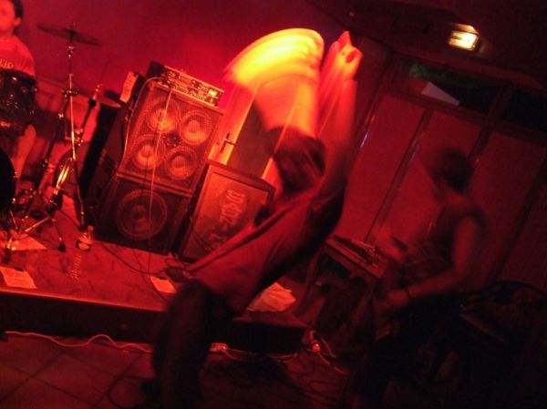 Sylvain (voix) : Sinon les projets du groupe ? Déjà on revient d'une tournée de deux semaines à travers l'Europe (La Ferrière dans le 3.8., Suisse, Tchéquie, Pologne, Hongrie, Slovénie, Italie). C'était énorme et ça nous a montré qu'il suffit de se prendre en main pour y arriver. On a pas besoin de tour-machin et autre manager pour ça. Y'a pas besoin d'être PINK FLOYD et de jouer devant 50000 personnes tous les soirs pour pouvoir tourner et rencontrer des gens et jouer dans des endroits cools. Sinon on aura un titre dans la compilation contre le fichage ADN. Un autre morceau pour la compilationDon A l'Etalage. On a aussi fait un titre pour la nouvelle compilationTaenia Solium. TAENIA SOLIUM c'est une asso d'agitation musicale (http://taenia-solium.net/) qui propose de sortir des compilations entièrement gratuites, uniquement financées par les concerts de soutien, sans subvention, ce qui permet de diffuser librement plusieurs milliers de disques à chaque épisode. En l'occurrence pour cette compilation, le principe c'était que chaque titre soit une collaboration entre deux groupes, ou entre un groupe et une ou plusieurs personnes. Donc nous on a décidé d'inviter YOUNES, le deuxième de TROIS, le chanteur de NERV, l'animateur du webzine ALGOBLAST, le compositeur fou derrière le projet OHMSÄGOR ; sinon il fait aussi de chouettes vidéos... Y'a aussi Nak, qui est le one man band ZERO ABSOLU, Môsieur Absolu comme on l'appelle, et l'ancien guitariste du groupe annécien SAONI MA. Et puis il y a Alex, le chanteur du groupe chambérien INYS. Y'a tous les liens sur notre site. Sinon moi mon but dans les mois à venir c'est de faire comprendre aux métalleux qu'ils ont le droit de se servir de leur cerveau et splitter.