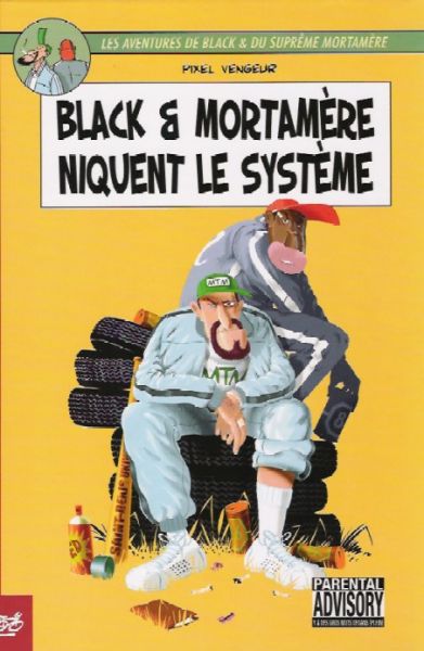 Inutile de le préciser, le titre de cette BD pastiche reprend une série bien connue ; Pixel Vengeur prend deux "jeunes" de cité et les insère dans des pages qui sont parfois la copie conforme de la B.D. originale ! Black et Mortamère, il faut bien le dire, sont deux "racailles" ultra-violentes obsédés par le fric, le cul et la défonce. Ils ne respectent absolument rien et s'expriment continuellement en verlan : dans ces historiettes, il traversent non seulement le décor de E.P. Jacob, mais aussi de nombreux autres, de tous styles, comme celui de Moebius & Jodorowsky (l'Incal), ou encore de Chéret & Lecureux (Rahan).... "Black et Mortamère niquent le système" donne donc un coup de vieux aux pastiches de Brunel, le maître du genre, capable de dessiner tous les styles de ses camarades de crayon. Ni misérabilisme sur les cités, ni rejet de leur sous-culture urbaine, Pixel Vengeur veut seulement nous faire hurler de rire !