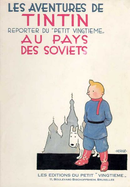 Dans cette première aventure devenue mythique, Tintin, déjà accompagné de Milou, est envoyé comme reporter du journal le Petit Vingtième en Russie. Dès le début, le Guépéou (ancêtre du K.G.B.) le considère comme une menace et tente de l'éliminer, mais Tintin s'illustre dans de nombreux exploits pour leur échapper. Sous des abords descriptifs, voire naifs, Tintin décrit la vérité sur la situation économique et sociale du peuple russe et dénonce par là même le régime soviétique. Des facheux ont alors argué que Tintin était antisémite, fasciste, raciste, etc, alors que Hergé fait d'emblée de lui un personnage généreux, plus tard défenseur des indiens d'Amérique et des Chinois opprimés par le Japon, ou se moquant des dictatures militaires. Mais il y en a une qu'il ne valait mieux pas attaquer, du moins jusqu'en 1991... Certes, Hergé n'étant pas un grand voyageur, et sa principale source d'information pour cette aventure fut le livre « Moscou sans voiles » de Joseph Douillet, un ancien diplomate, dont il adapta des scènes entières, ce qui ne l'empêche pas d'avoir vu juste sur l'URSS. Publié juste à 10 000 exemplaires en 1930, cet album est devenu un objet de collection, et a été réimprimé de nombreuses fois ! Sa forme initiale n'avait rien à voir avec ce que les plus jeunes connaissent de Tintin : seulement trois grosses rangées de vignettes en noir et blanc donnant une épaisseur double à l'ouvrage, avec un trait encore grossier et un scénario dicté avant tout pour accrocher le jeune lecteur hebdomadaire sur deux pages. Car c'est l'abbé Norbert Wallez, directeur du Vingtième Siècle à l'époque, qui a l'idée d'inventer un personnage qui pourra montrer aux jeunes Belges la dictature en URSS. Il confie ce projet à Hergé, alors rédacteur en chef du Petit Vingtième. Ainsi naquit Tintin. Ce fut un succès immédiat.