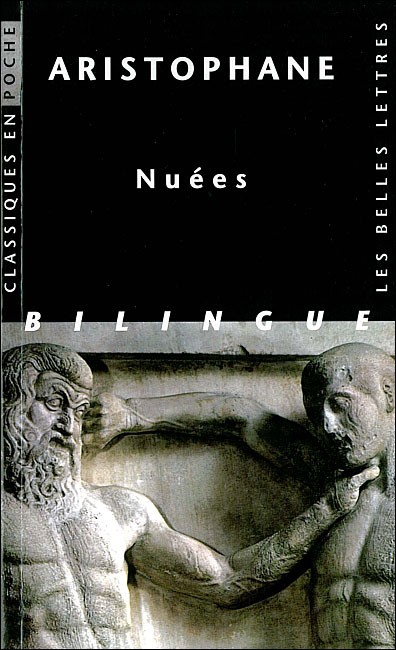 Au contact de Socrate et de ses disciples, Strepsiade apprend, émerveillé, que Zeus n'existe pas, que le monde appartient à des déesses appelées Nuées et qu'outre ces fameuses Nuées, un bon socratique vénère le Vide et le Langage. Il faut dire que Socrate et ses disciples passent le plus clair de leur temps à disserter sur des choses sans intérêts ou à construire des raisonnements sans queue ni tête destinés à impressionner les imbéciles.