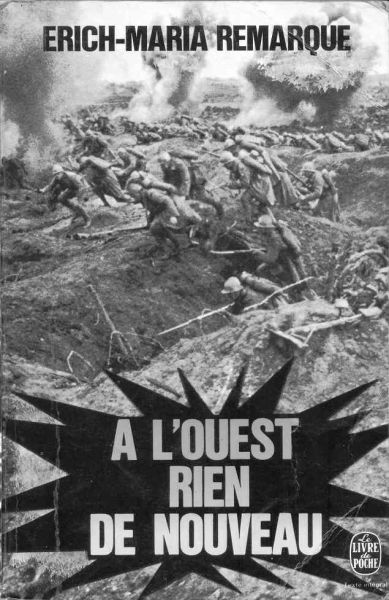 Chez Remarque, la boucle est bouclée quand le héros Paul Baumer meurt à la fin, bêtement, deux jours avant l'armistice du 11 novembre ! En fait, Remarque le pacifiste fuit pour s'installer aux USA à l'arrivée des nazis au pouvoir. Son livre sera même brulé dans un "auto-da-fé" nazi. Il n'écrira plus rien, comme si « A l'Ouest, rien de nouveau » avait finalement suffit à exorciser ses souffrances... Mais un film en sera une fidèle adaptation (voir chronique). A noter que c'est son point de vue est repris par l'historiographie, jusque dans la B.D., avec le fameux Tardi, qui est aussi très engagé...