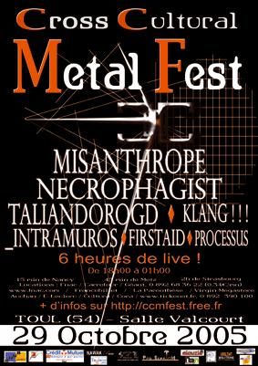 Une personne rencontrée sur place m'affirme que maintenant va venir un groupe sur lequel il va falloir compter. Ce groupe est Intramuros. Effectivement il va falloir se pencher sérieusement dessus. C'est assez couillu de leur part de venir dans ce genre de fest car on ne peut pas dire qu'ils y soient vraiment à leur place. Pour ma part rien à foutre ! Je passerai sur les commentaires absolument débiles de connards prépubères attifés de t-shirt de neo métalleux à la con qui n'ont pas arrêté de nous les rompre pendant une partie du set en se foutant de la gueule du groupe. Ceci dit, quand on est crétin congénital qui a découvert le metal il y a 6 mois avec Korn, je comprends un peu. Parce que le groupe qui a joué là se rapproche d'une mouvance absolument metal mais très soft pour tous les amateurs de bourrinage que nous sommes. Il est évident que le premier groupe auquel j'ai pensé c'est Tool. La voix claire (rah putain de chanteur, quelle voix) fait immédiatement penser à Placebo et les parties gueulées à Tool. La musique est très feutrée mais absolument hypnotisante. Le groupe s'est, de plus, fendu d'une petite mise en scène intéressante, mais hélas peu poussée (des projections sur un voile séparant le groupe du public). On a eu le droit a quelques mini bugs dont un notamment dû à l'agitation du chanteur ultra charismatique, qui de par ses bonds de cabri a débranché la gratte. Un groupe très intéressant, à surveiller de près pour tous ceux aimant Tool !