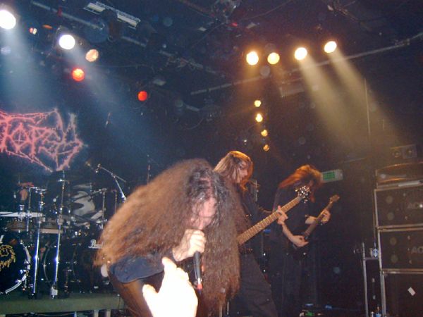 Et enfin, l'ambiance commence à chauffer. Et voilà que les canadiens de Cryptopsy arrivent sur scène pour nous asséner leur death technique de toute beauté (quoique les premiers titres étaient plus rentre-dedans). La fosse n'a pas arrêté de bouger sous le déluge sonore de Cryptopsy. Les Québécois nous ont concocté un medley du meilleur de ce groupe culte s'il en est. Une prestation scénique respectable qui paraissait malgré tout un peu longue après le rappel. Un très bon groupe à voir et peux être à revoir pour tout amateur de death metal qui se respecte. Kharon