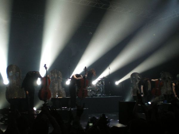 Apocalyptica joue de son image comme personne ! Tout est calculé ! Ça commence par leur physique (tous des mannequins), par leur gestuelle, l'organisation de leur concert, les reprises qu'ils font, les guest qu'ils ont, la promotion qu'ils font, etc. tout est calculé ! Groupe de metal symphonique alors ? Nein ! Au début peut-être, mais ils se sont rapidement rendu compte qu'il fallait mieux avoir comme guest le chanteur de Slipknot ou celui de The Rasmus que de continuer à collaborer avec Dave Lombardo ! On eu le droit à soi-disant deux « rappels » ce soir, laissez-moi rire, ce n'est pas du rappel ça ! C'est deux morceaux tout à fait prévu et ce depuis le début de la tournée ! Il n'y a eu aucune once de prise de risque, tout était millimétré, calculé, prévu... C'était d'une flagrance, leur manière d'headbanguer, de remercier le public, de jouer avec lui, j'en avais presque la Nausée (cf Sartre). Dès que l'on sortait des sentiers battus, en fait un gamin en train de slamer, toute la sécu était en chaleur, comme si on avait là affaire à une sorte de terroriste ou que sais-je ! C'est un groupe qui est fait pour plaire aux mamans accompagnant leurs marmots, c'est un groupe que l'on consomme, à la mode, très proche d'un Nightwish. C'est joli, ce n'est pas vulgaire, on a le droit à notre petit refrain accrocheur (ça devrait pas tarder à terminer sur les ondes hertziennes ça), c'est mielleux comme pas possible... Dernier point, et je terminerai là-dessus, je me suis rendu sur le site de Metal Archives pour en savoir un peu plus sur ces finlandais et là, j'ai compris: ces gars sortent des singles comme moi je sors mes poubelles ! Impressionnant !