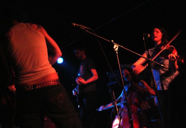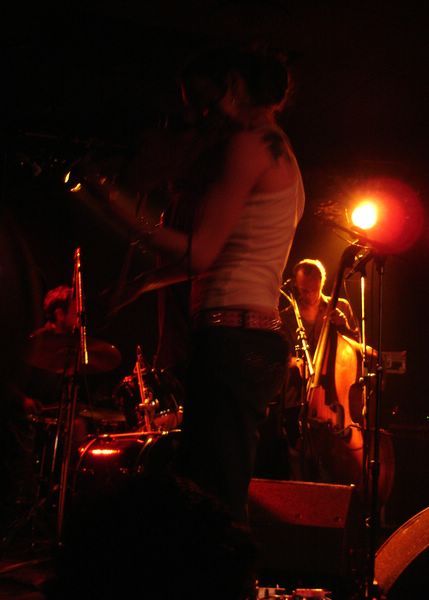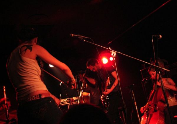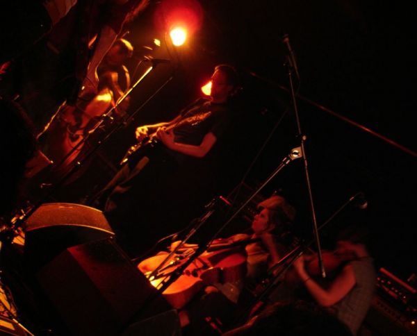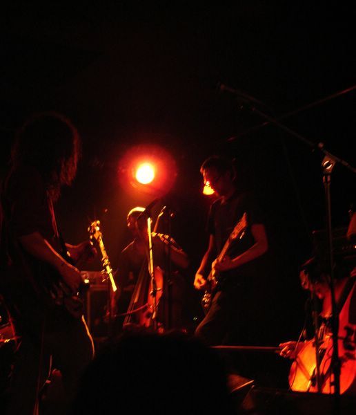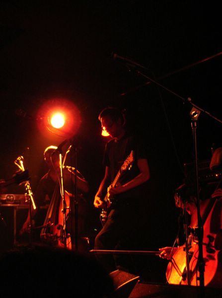 Le Romandie est une salle fort bien connue par le public lausannois, notamment pour ses affiches variées et originales. Quelle autre salle aurait pu acceuillir un tel groupe tout en conservant son atmosphère intimiste ? Car A Silver Mont Zion est un groupe assez complexe. Groupe formé en 1999 sur les fondations de Godspeed You ! Black Emperor, il fut rejoint par d'autres musiciens pour atteindre le nombre de sept et malgré tout reste une formation atypique de par sa composition instrumentale : deux guitares, une batterie, un violoncelle, deux violons et une contrebasse remplaçant la basse. De plus leur nom évolue en fonction de la sortie des albums. Le chant ainsi que les choeurs ont une position particulière dans leurs compositions très progressives. A Silver Mont Zion interprête ses compositions post rock avec beaucoup de fatalisme et de mélancolie. Ses morceaux sont également inspirés par des pièces néo-classiques acoustiques et parfois minimalistes : les cordes sont parfois pincées ou encore soufflées, preuve que le groupe recherche perpétuellement des nouvelles sonorités. Bien sur les guitares sont toujours là mais depuis l'apport des instruments à cordes (deux violons, un violoncelle et une contrebasse) cette impression est renforcée par l'opposition des sonorités tendues et crispés du quatuor à cordes et celles des guitares plus hachées et saturées.