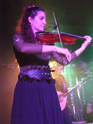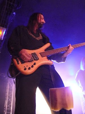 C'est ensuite au tour des Espagnols d'investir la scène devant laquelle le public, nombreux, s'amasse. Figure majeure de ce courant néoclassical, on peut s'étonner de sa position intermédiaire sur l'affiche mais, guidé par leur figure de proue, la sirène Lady Morte, les troubadours ont livré un set ensorcelant, mêlant volutes arabisantes et folklore ibérique en un tourbillon enchanteur. Bien sûr et nonobstant les qualités des autres musiciens, tous les regards sont braqués sur la chanteuse à la présence magnétique. Quand elle ne joue pas du hurdy gurdy, elle se lance dans une danse des sept voiles du plus bel effet. Les classiques du groupes émaillent une prestation solaire, de Summoning The Gods à The Sorceress, de Morgana à Yggdrasil.